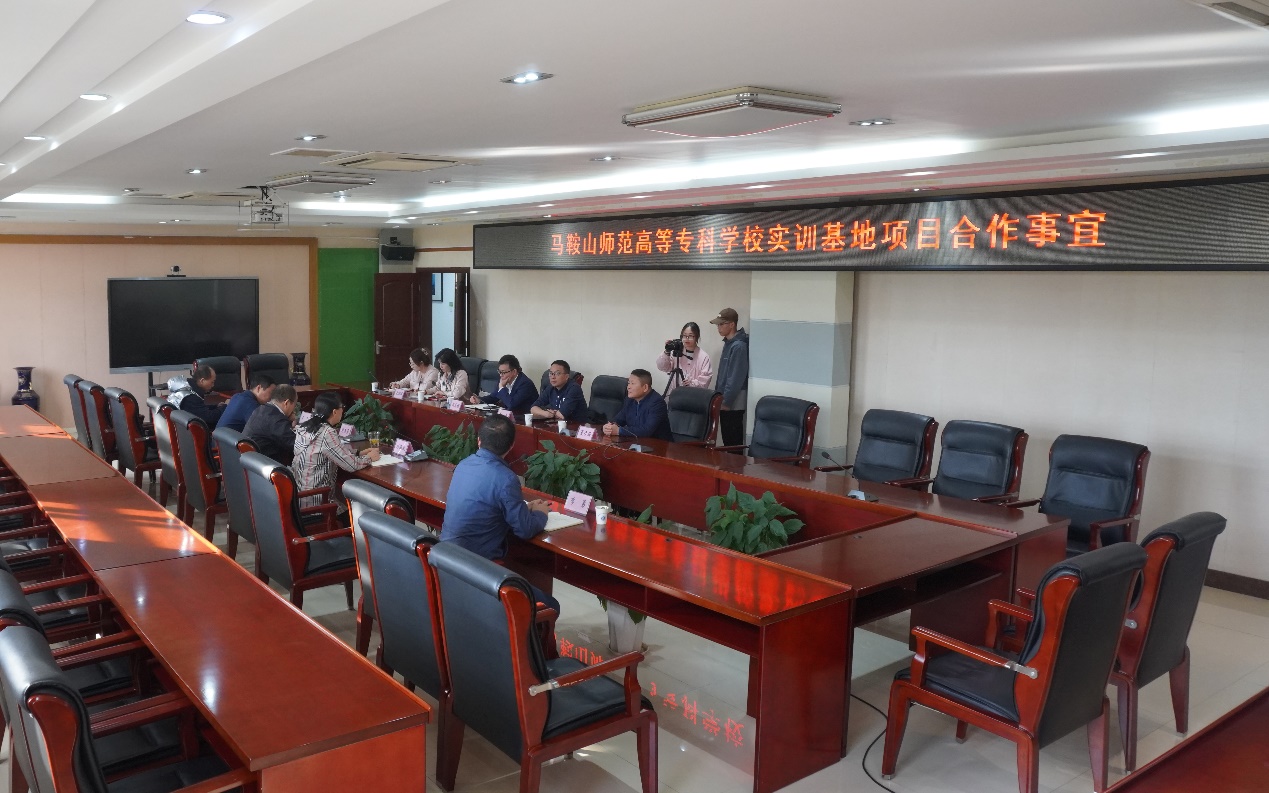 11月8日下午,马鞍山师范高等专科学校与多家企业负责人就实训基地项目合作进行了深入的交流洽谈,共同推进校企合作和实习实训基地建设。校党委副书记、校长刘淑凤,党委委员、副校长周志亮,党委委员、财务处处长潘可国出席会议。