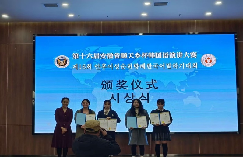 近日,由安徽省教育厅主办,合肥学院承办的第十六届安徽省“顺天乡杯”韩国语演讲大赛落下帷幕。经过初赛选拔,来自全省十多所本、专科院校的16名选手进入了决赛,旅游与外语系2022级应用韩语专业的宋新苗、李紫豪同学在决赛中分获银奖和铜奖。