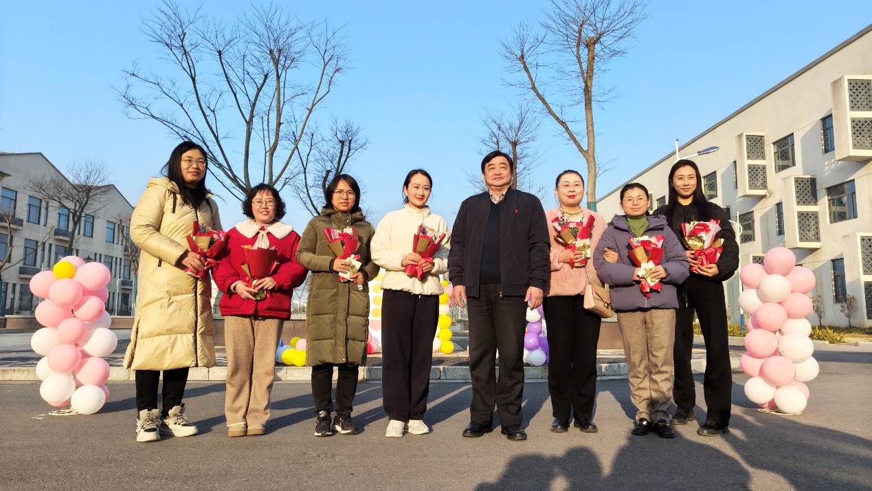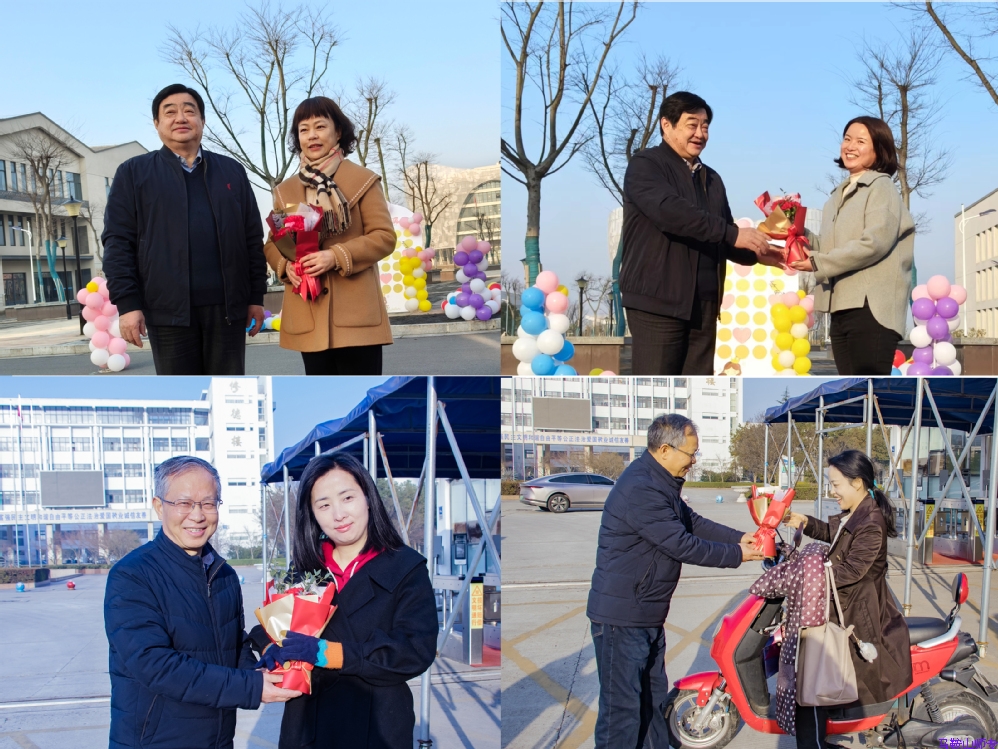 在校门口,女教职工们纷纷与校领导们合影纪念,留下最美的倩影,定格温馨而美好的瞬间。整个学校都沉浸在一片融洽、和谐、欢乐的氛围中。一朵朵美丽的鲜花、一声声温馨的节日祝福、一张张洋溢着灿烂笑容的脸庞,构成了马鞍山师专这个清晨最美的一副画面。手上有花,肩上有责,心中有梦。大家表示将会继续发扬“巾帼不让须眉”之势,用高度的责任心和敬业情操,谱写学校新的发展篇章。