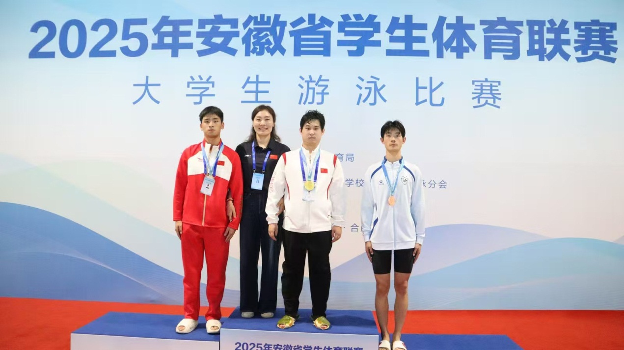 6月11日至13日,由安徽省教育厅、安徽省体育局主办,安徽省学校体育协会游泳分会承办的2025年安徽省学生体育联赛大学生游泳比赛在中国科学技术大学圆满举行。马鞍山师范高等专科学校5名参赛学生奋力拼搏,成功打破一项纪录,取得了两金、一银和两铜及三项二等奖、三项三等奖的优异成绩,学校荣获“体育道德风尚奖”。