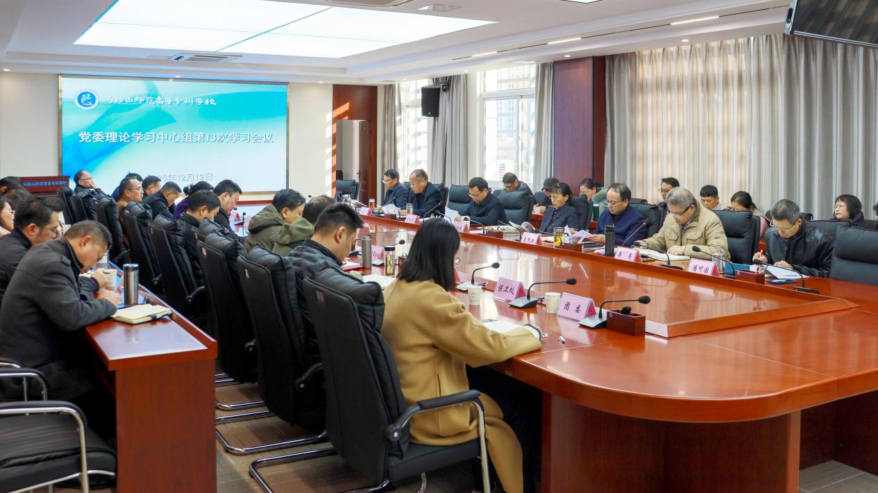 12月12日,马鞍山师范高等专科学校党委召开2025年党委理论学习中心组第十三次集中学习会,继续围绕党的二十届四中全会精神这个主题,开展深入学习研讨,在全校持续掀起学习贯彻党的二十届四中全会精神的热潮,切实做好贯彻落实工作。党委书记李怀东主持会议并讲话,党委副书记、校长刘淑凤,校领导杜维斌、夏慧新、李胜、栗亮、全立荣、潘可国参加学习会。
